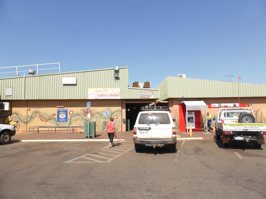 The community looked quite nice from the road but not so good when you get up close. The shops were all covered with security mesh and are not very inviting. Woolworths supermarket is small but adequate with everything we needed. Petrol was expensive but we filled up anyway - when you need to re-fuel you have to pay the price.
